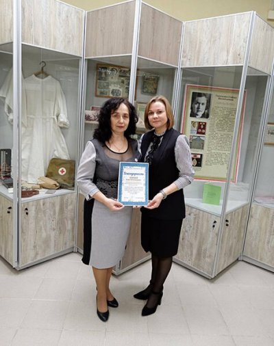 Директор историко-культурного центра Светлана Авсянникова поблагодарила за сотрудничество Клару Климову и вручила ей благодарность. Также Светлана Николаевна выразила слова искренней благодарности Владимиру Рудинскому, руководителю музея Красного Креста средней школы №47 г. Гомеля Ирине Репиной, директору аграрно-технического колледжа Николаю Адашкевичу, учителю истории и обществоведения СШ №1 Виктории Тиличенко за содействие и предоставление материалов. Светлана Авсянникова передала в дар музею райбольницы и музею Красного Креста средней школы №47 г. Гомеля книги «Памяць».